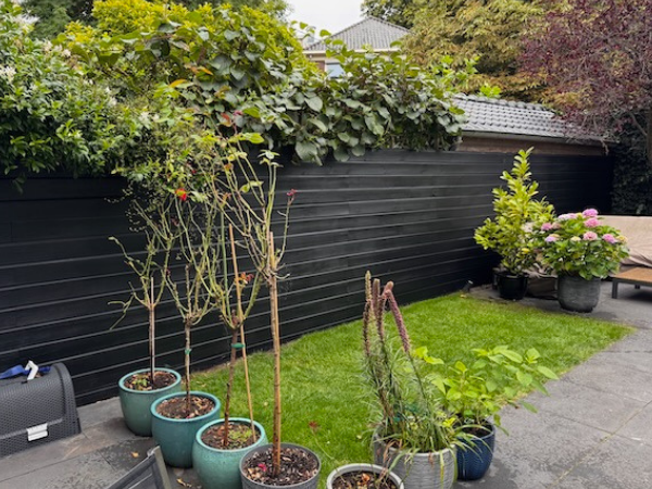Soms zijn het de rustige achtergronden die je tuin laten stralen. Kijk maar naar de make-over van deze houten schutting. Wat eerst een verweerde, grijszwarte wand was, is nu een strak zwarte eyecatcher geworden dankzij Sigma Woodprotect Ultra Satin in de kleur Whitby Jet (PPG1001-7W).