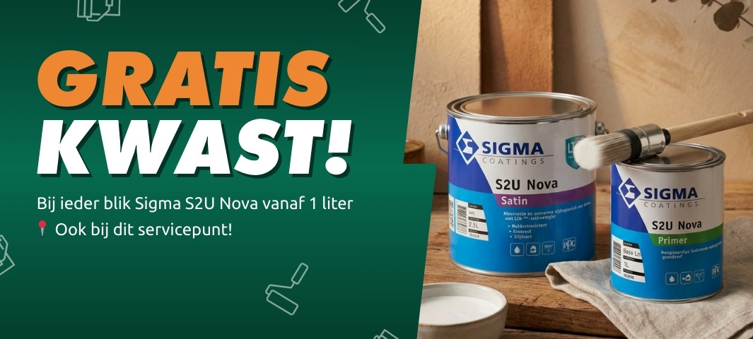 Bovendien koop je naast muurverf, lakverf en primers voor binnen en buiten ook al jouw schildersbenodigdheden bij ons in Doetinchem. Kijk ook of we weer aantrekkelijke verf aanbiedingen voor je hebben, dat doen we regelmatig, denk aan voordelige verf van merken zoals Sigma, Histor, Sikkens en meer.